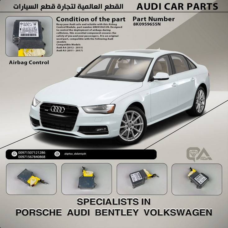 - Keep your Audi safe and reliable with this Airbag Control Module, part number 8K0959655N. Designed to control the deployment of airbags during collisions, this essential component ensures the safety of you and your passengers. It is an original used part, compatible with the following Audi models: